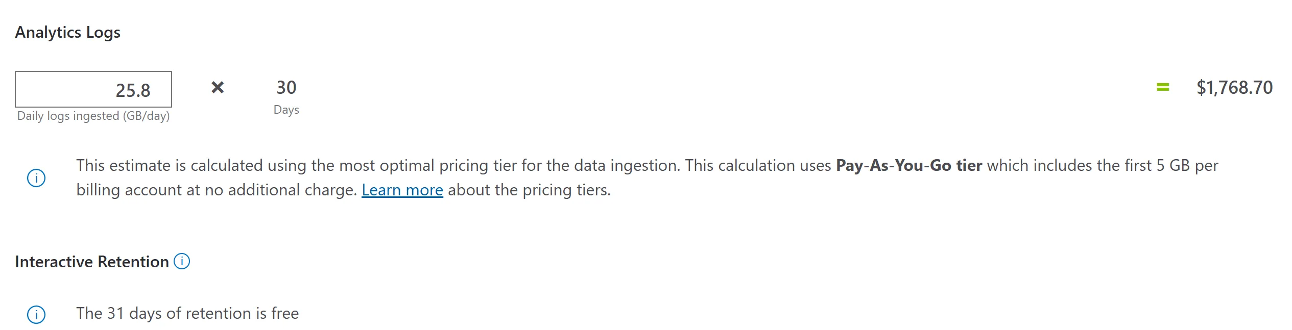 Estimated Cost for 25.8 GB Logs Ingested (No Filtering or Optimizations)