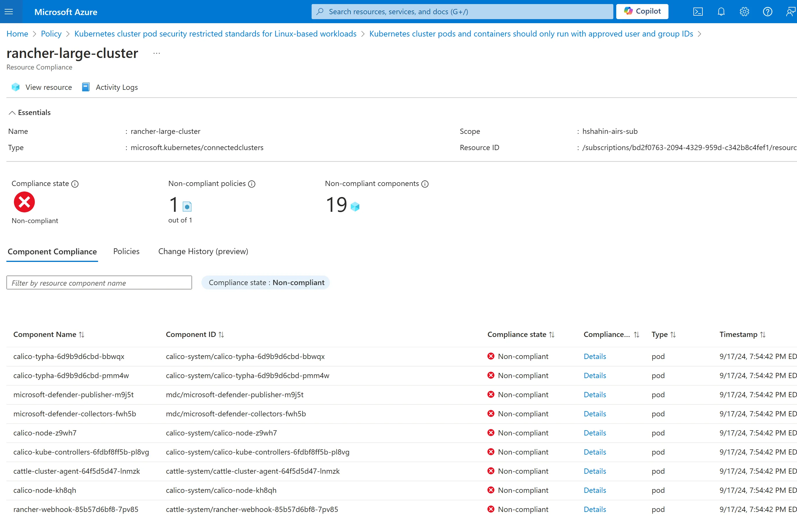 Azure policy allows you to govern and ensure your cluster is in compliance with security and deployment best practices. Policies can be configured in an audit mode to report back on compliance and then even further in deny mode to proactively block activities that go against configured policies.