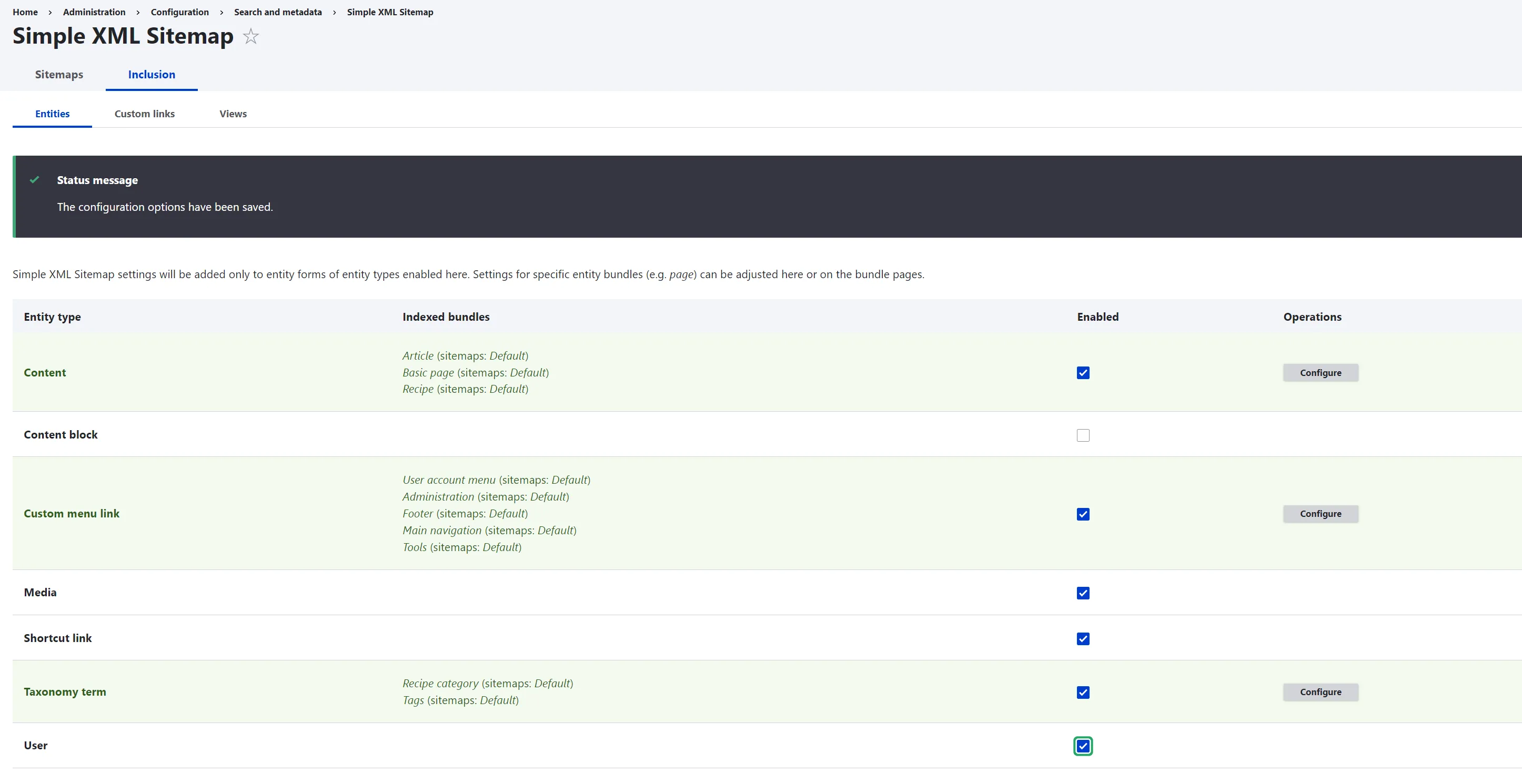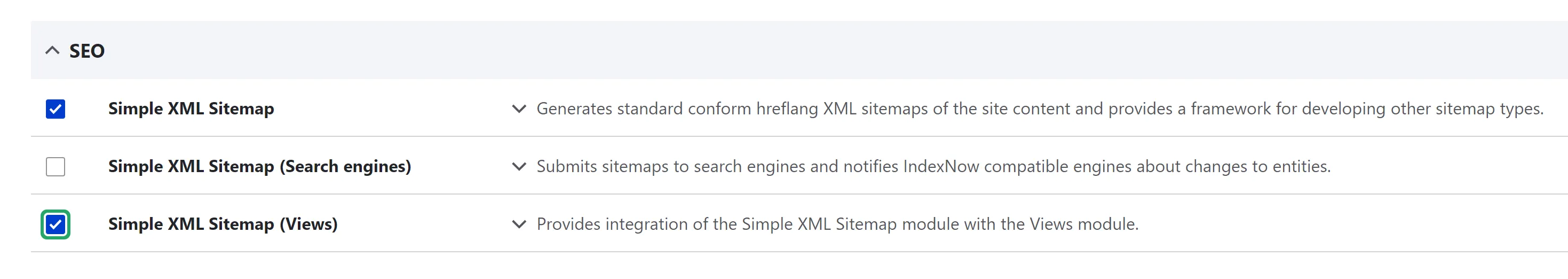 Now, how do we generate a sitemap? After a random search of Drupal modules, the following simple sitemap module looks promising. We expect that this module will produce a sitemap.xml file that includes all the paths within our site. Let’s test that hypothesis.