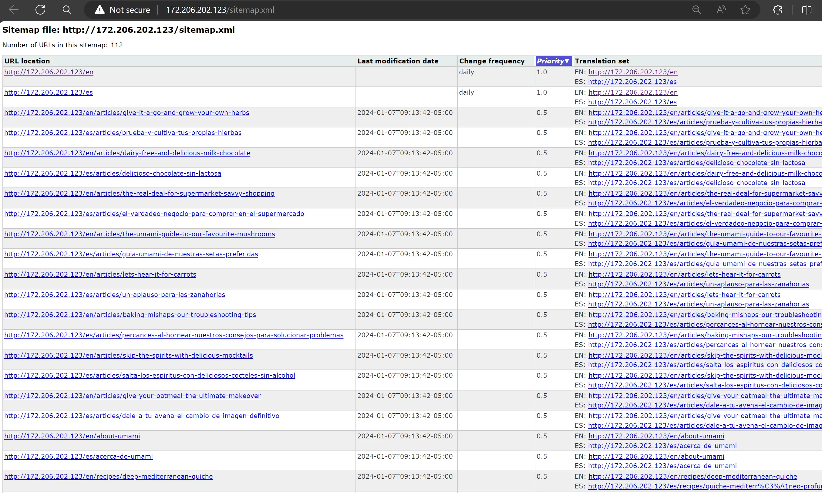 You should then see the sitemap when navigating to the sitemap.xml path: