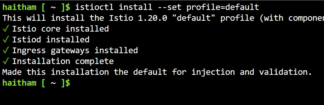 You may not need to follow this step if you already have Istio deployed. I’ll take a path of deploying the default profile to get an ingress gateway and the core components deployed:
